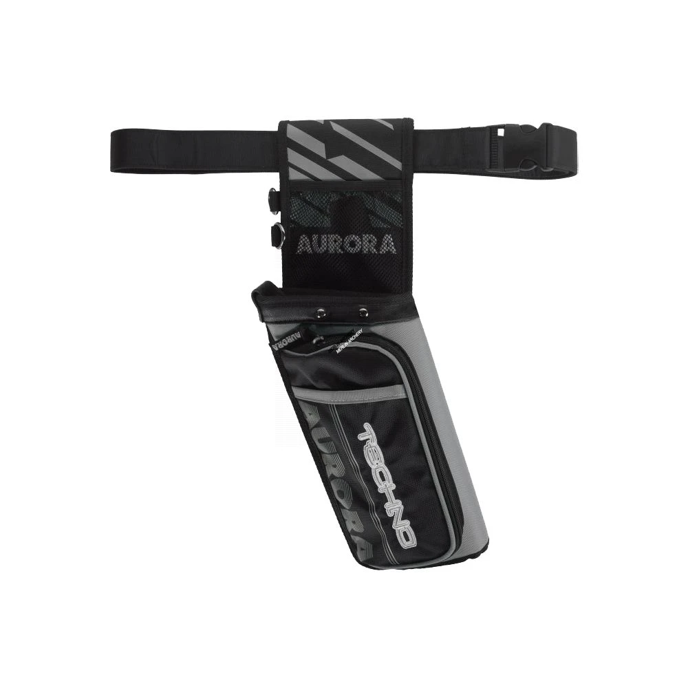 The Aurora Techno field lite quiver has a large accessory pocket on the main body and a mesh pocket on the top to store the arrow puller or tab.